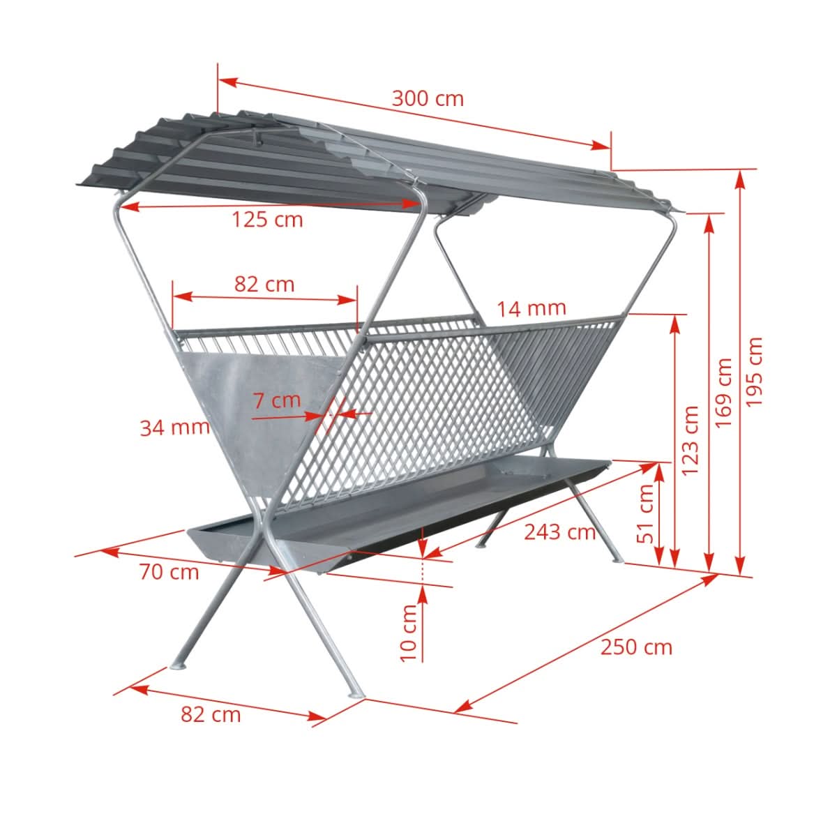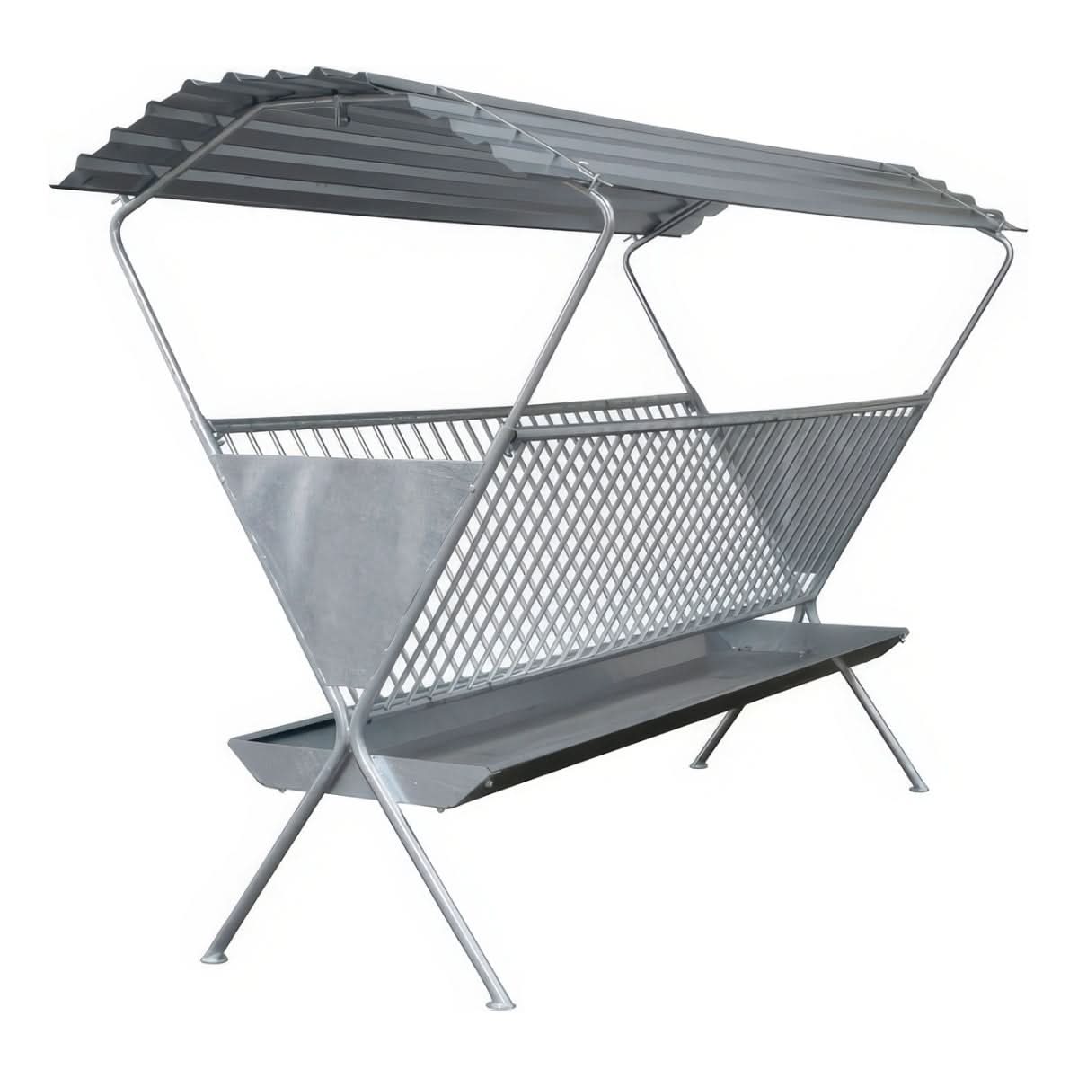 Ieslea cu acoperis este un echipament ideal pentru hranirea animalelor domestice sau salbatice, cum ar fi oi, capre, caprioare sau vitzei, in zone deschise. Acoperisul protejeaza hrana impotriva intemperiilor, prevenind deteriorarea acesteia din cauza ploii sau zapazii.