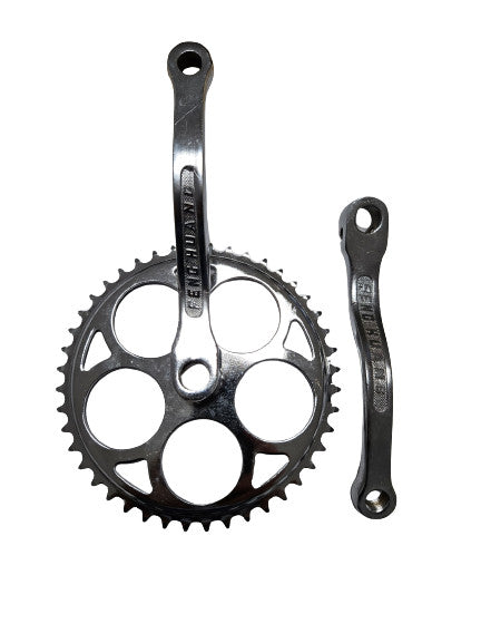 Foaie angrenaj + brate curbate bicicleta cu motor. Aceaste brate curbate sunt utile in momentul in care motorul bicicletei este montat in centrul cadrului (iar acest fapt duce la imposibilitatea de a mai pedala din cauza dimensiunii prea mari a motorului). Specificatii tehnice: Nr dinti foaie: 44 Ax rotund Prinderea este pe rotund Kitul motor de bicicleta pentru care se potriveste acest produs: https://www.generalmotor.ro/kit-bicicleta-motor-benzina-4-timpi/kit-motor-4-timpi-bicicleta-80-cc-model-nou