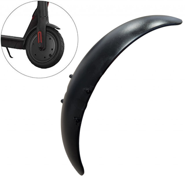 Aparatoare roata fata trotineta electrica Dimensiuni: Lungime: 270mm Latime: 52mm Distanta intre 2 gauri situate pe aceeasi parte: 35mm Culoarea aparatorii este cea din imagine (gri inchis) Aparatoarea se livreaza suruburi. *Mentionam ca produsul nu este original, insa este compatibil cu modelele prezentate in descriere.