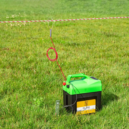 Aparatul DL 250 este potrivit exclusiv pentru imprejmuirea animalelor domestice – oi, capre, porci, cai, vaci, caini etc.