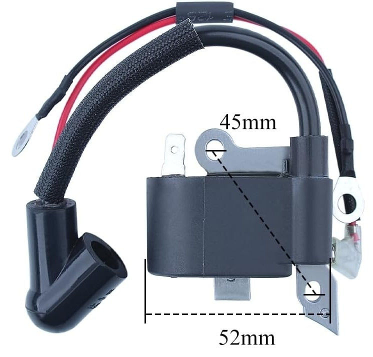 Aprindere drujba compatibila pentru modelele Husqvarna 137, 142. Distanta dintre prinderi(mijloc mijloc): 44mm; Lungime fisa: 90mm; Latime aprindere: 48mm; Lungime aprindere: 52mm.
