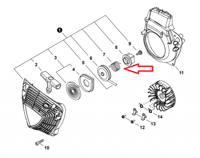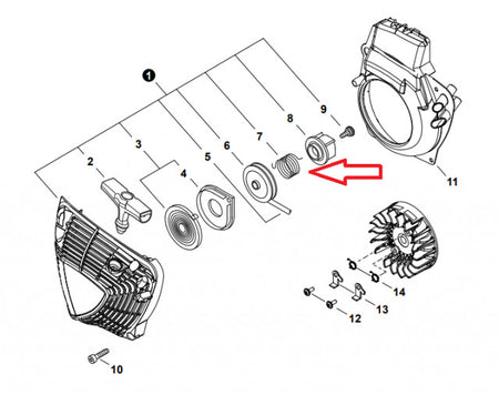 Arc demaror drujba compatibil cu ECHO CS4510 EPS. Este arcul situat intre cei doi tamburi demaror. La aceste tipuri de demaroare mai exista si arcul demaror. Cod OEM: P022050420