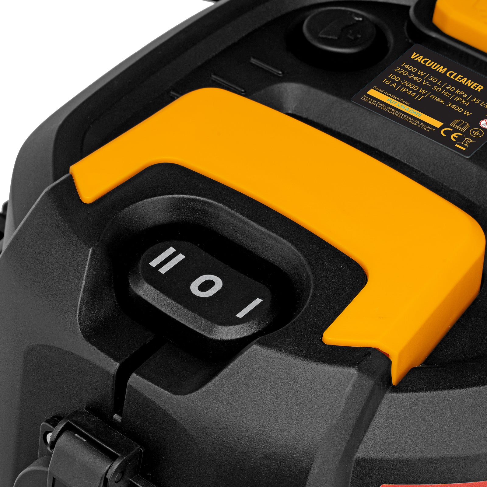 Aspiratorul Denzel EVC30 este ideal pentru curatenia profesionala sau casnica, cu un rezervor mare de 30 litri si putere de 1400 W. Furtunul de 3 m permite acces facil in toate zonele, iar priza cu sincronizare automata ofera posibilitatea de conectare a sculelor electrice pentru colectarea imediata a resturilor. Designul robust si compact asigura manevrare usoara si depozitare practica.
