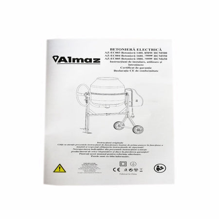Betoniera electrica Almaz 180L, 1000W, 28 rpm, coroana fonta, cuva otel