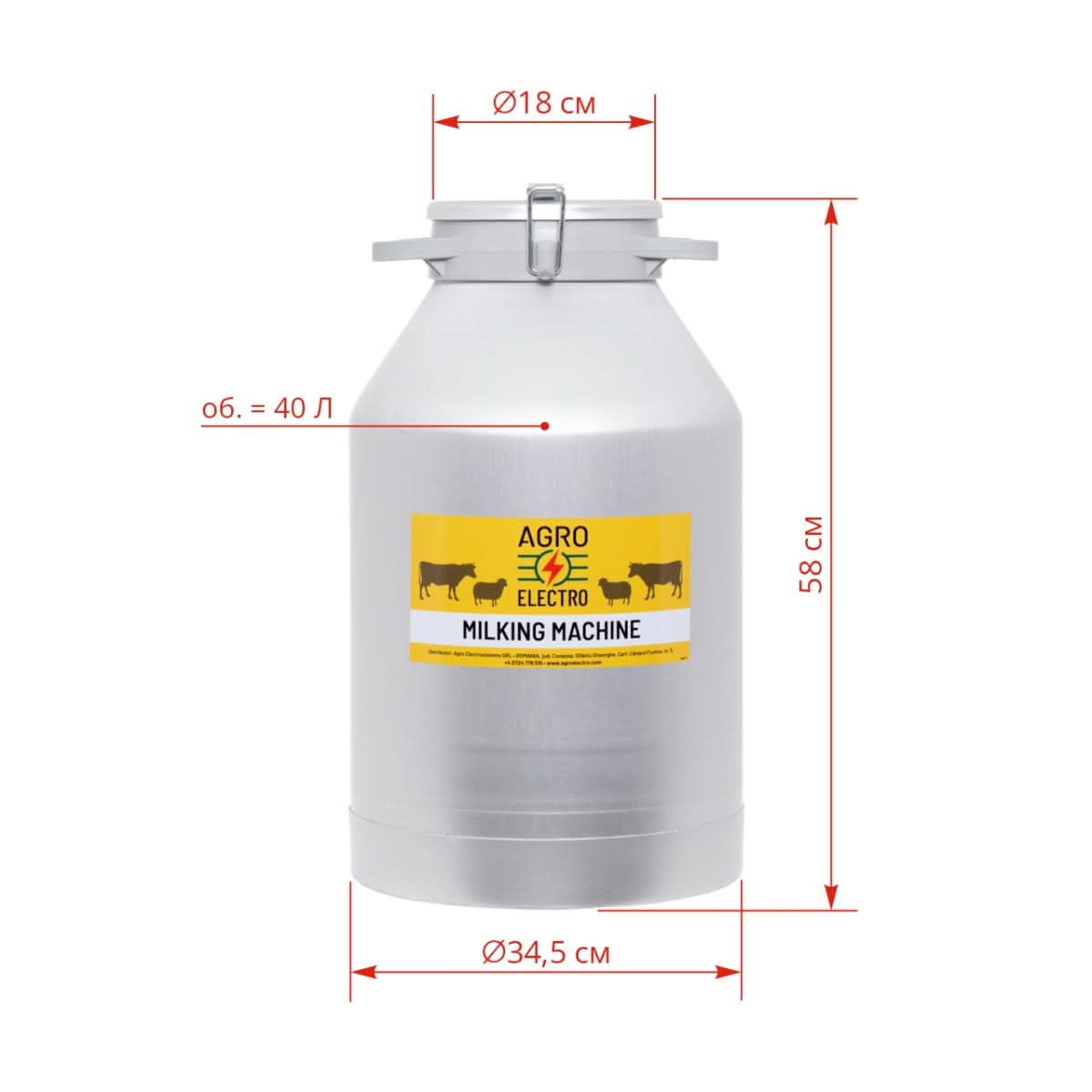 - Bidonul din aluminiu de 40 litri este ideal pentru transportul laptelui, oferind siguranță și igienă. Acesta este echipat cu:
