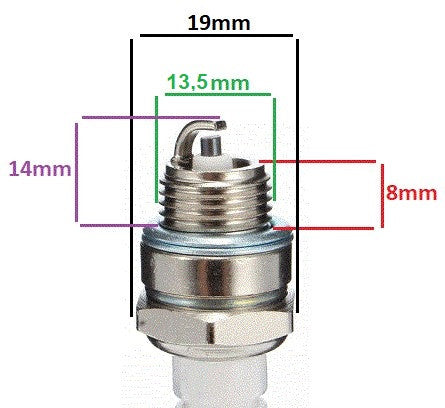 Bujie pentru orice model de drujba (Stihl, Husqvarna, Drujba chinezeasca, Partner, Poulan etc.) si motocoasa etc. Cheie: 19mm Filet: 13,5mm