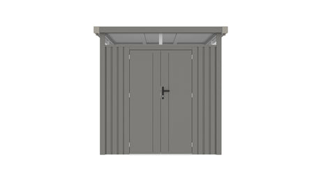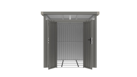 Casuta / magazie de gradina premium metalica KLUGMEISTER Anna-B, Gri Aluminiu, 230x230x222 cm, cu fereastra si baza metalica
