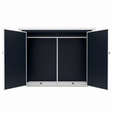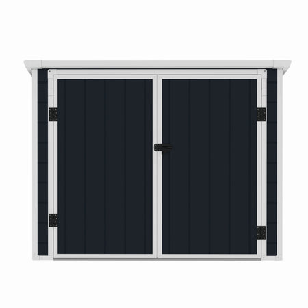 Accesul este facil prin usile cu balamale, suficient de late pentru manipularea obiectelor voluminoase. Podeaua metalica inclusa este rezistenta la sarcini mari, nu putrezeste, nu ruginesc si nu necesita intretinere speciala. Pentru siguranta, casuta este prevazuta cu sistem de inchidere pentru lacat.