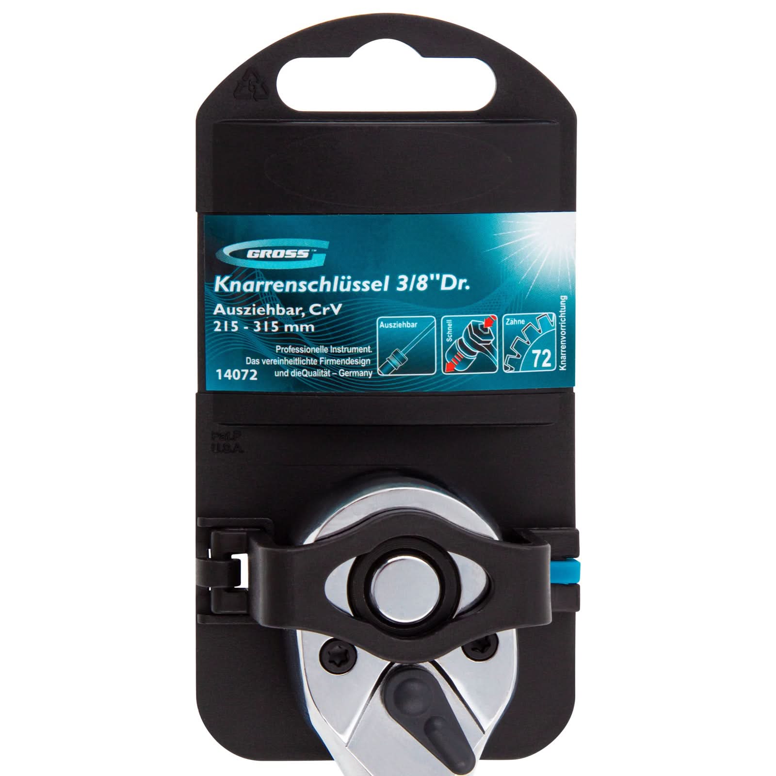 Descriere produs: Această cheie clichet telescopică Gross este un instrument esențial pentru orice set de unelte, oferind flexibilitate și accesibilitate în spații înguste. Cu o gamă de lungime ajustabilă între 215 mm și 315 mm, această cheie este perfectă pentru aplicații variate, de la lucrări de întreținere generală la reparații auto. Fabricată din oțel crom-vanadiu (CrV) cu un finisaj cromat, aceasta asigură durabilitate și rezistență la coroziune.