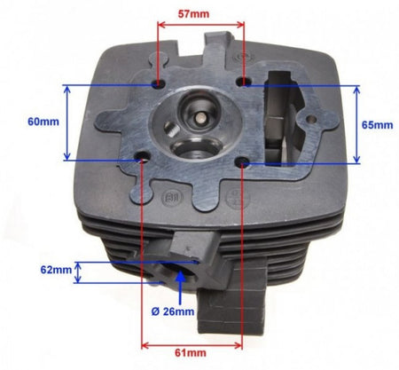 Chiulasa ATV Loncin CROSS 250cc 4T, DIABOLINI, BASHA etc. Specificatii: Diametrul camerei de ardere: 66 mm Diametrul de intrare: 26 mm Distanta dintre gauri: 62 mm M6 Diametru evacuare: 40 mm Lungime arbore: 92,3 mm Filet bujie: M12x1,25 Supapa de aspiratie: Lungime: 90 mm Diametru ciuperci: 32 mm Diametrul arborelui: 5,5 mm Supapa de evacuare: Lungime 89,2 mm Diametru ciuperci: 27 mm Diametrul arborelui: 5,5 mm Pentru dimensiuni va rugam sa consultati imaginea produsului.