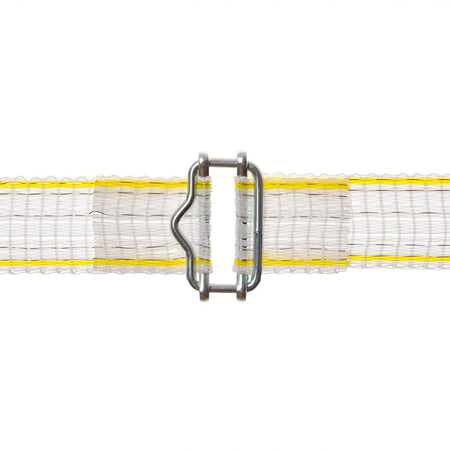 Conectorul de bandă pentru gard electric (20 mm) asigură o conexiune electrică sigură și eficientă pentru prelungirea sau conectarea benzii gardului electric.