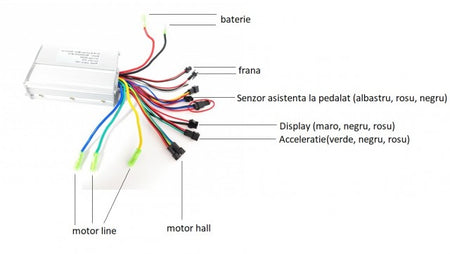 Controler bicicleta electrica 36V 48V 18A (pentru motoare de 350W) compatibil cu motoare fara perii (cu senzor Hall) Voltaj: 36V 48V DC Amperaj 18A Putere: 350W Dimensiuni: 9 x 5 x 3 cm Pentru conectiuni va rugam sa verificati imaginea produsului.