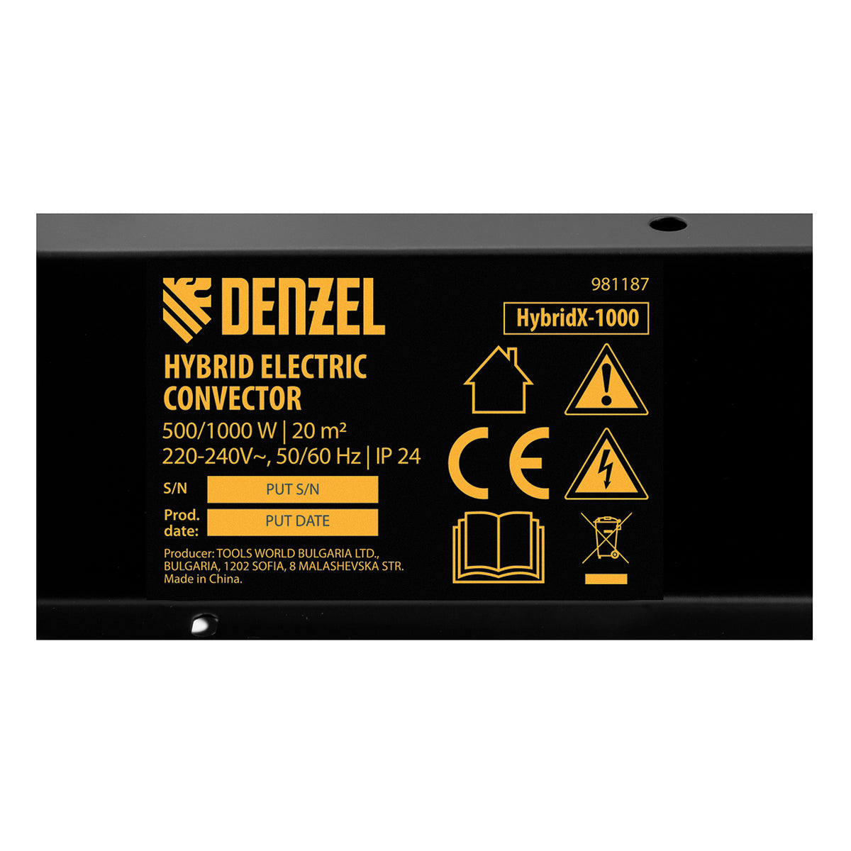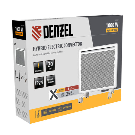 Convector electric hibrid Denzel HybridX-1000, 1000W, incalzitor IR, termostat digital, montaj pe perete sau podea