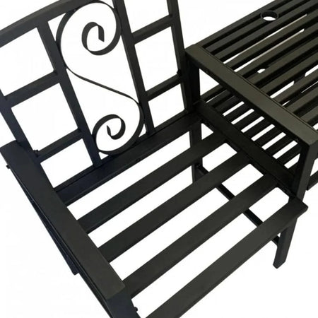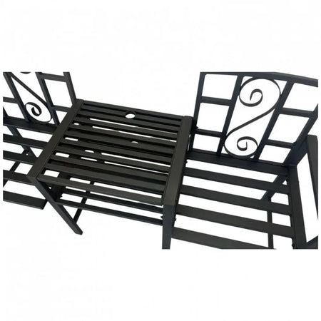 Set mobilier gradina VivaTechnix VMD-1046, masa si 2 scaune, otel, negru mat, cu orificiu umbrela