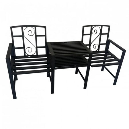 Setul de mobilier pentru gradina VivaTechnix VMD-1046 este alegerea ideala pentru terasa, balcon sau curte. Construit din otel solid cu profil patrat de 40x20x1.5 mm, setul ofera stabilitate si durabilitate, fara a necesita intretinere periodica. Masa este prevazuta cu orificiu central de 42 mm pentru montarea unei umbrele, iar scaunele ergonomice cu cotiere asigura confort sporit.