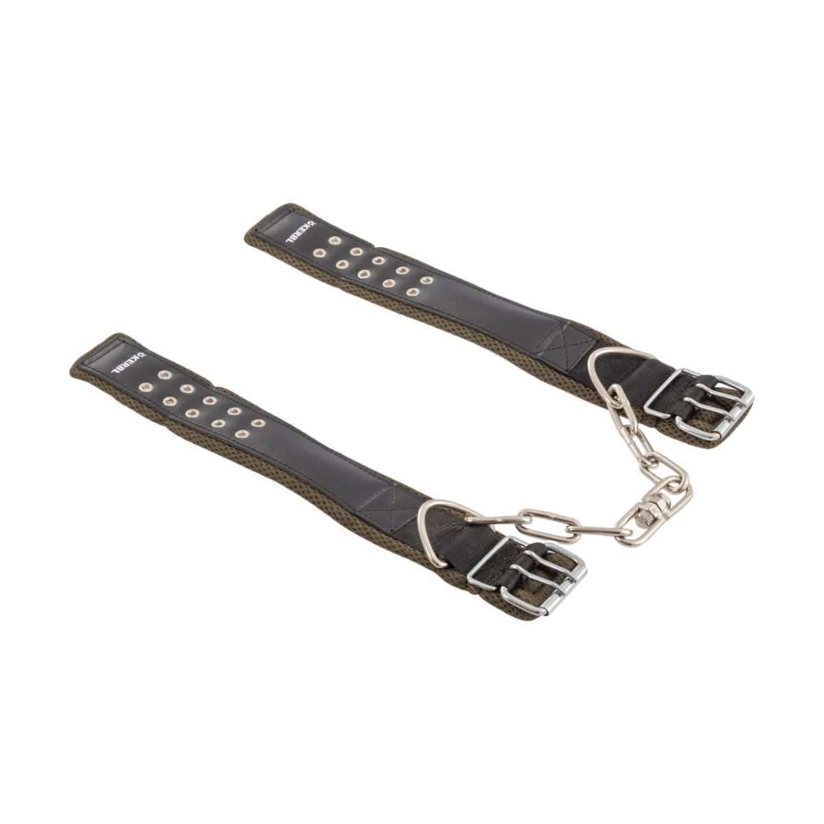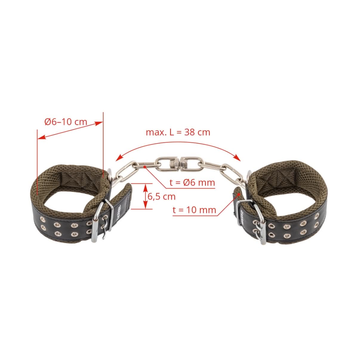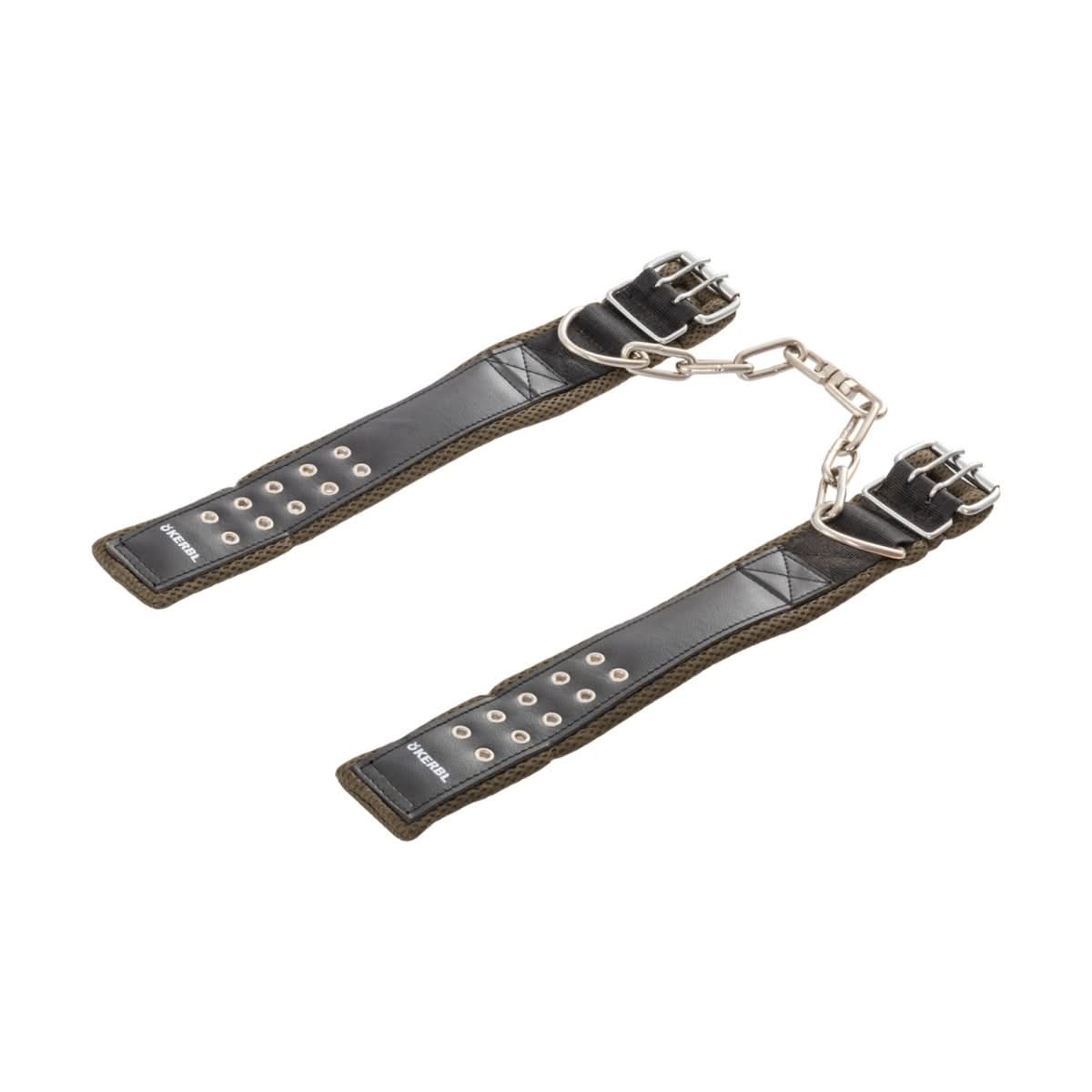 Cureaua include o căptușeală moale pentru a minimiza disconfortul și a asigura un confort maxim animalului. Ansamblul este realizat din două inele de piele de calitate, prevăzute cu catarame rezistente și legate printr-un lanț metalic. Mecanismul rotativ al lanțului previne tangajul și asigură o utilizare mai eficientă.