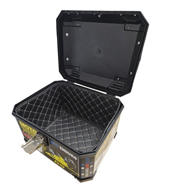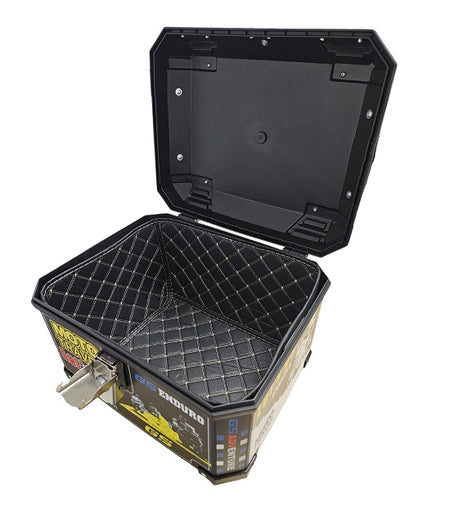 Cutie portbagaj moto GS Enduro 45L, prevazut cu sistem de inchidere cu cheie. Pachetul contine si un sistem de prindere pe motocicleta. Material: plastic Dimensiuni aproximative: L 42cm x l 37cm x h 33cm (45Litri)