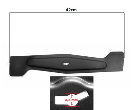 Cutit masina de tuns gazon compatibil cu: Castorama MacAlister 1800 42, MLMP 1800, MLM 1800 Acest cutit mai este compatibil si cu unele modele de taiat masini gazonul comercializate in Leroy Merlin, de asemenea si la unele modele de Einhell Cod OEM: GM20BX.00.11 Pentru dimensiuni va rugam sa consultati imaginile produsului.