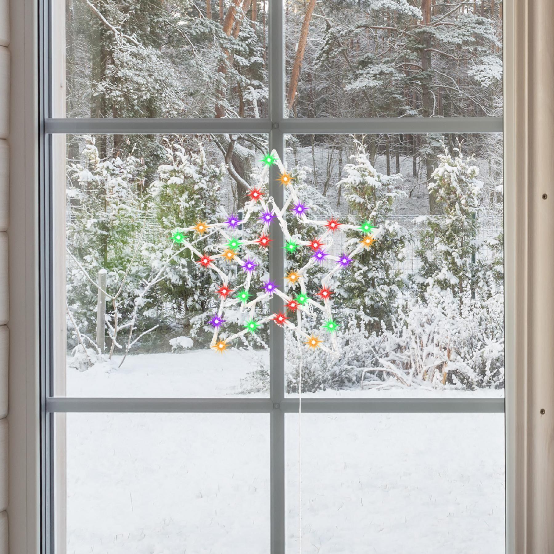 Decoratiune LED fereastra KID503M, stea colorata, 35 LED-uri, timer 6/18h, adaptor IP44, exterior/interior