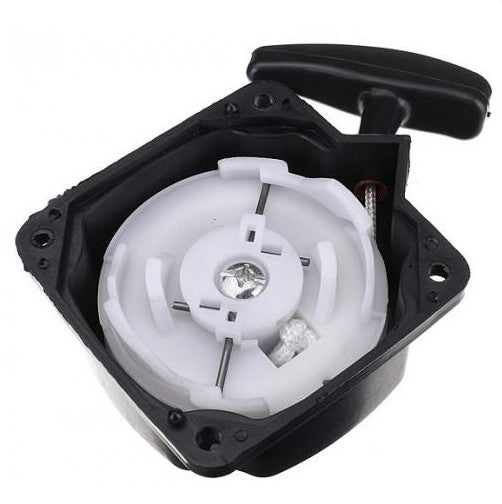 Demaror pornire motocoasa complet Demaror intalnit pe motocoase cu motoare chinezesti tip (BC CG CYG) 32, 33, 43, 415, 430, 520 printre care: Ruris Musson 420D si Musson 340D DEMON, NAC, VICTUS, POWERTEC, TEXAS. Alpina BJ345 TB34D, Alko BC410 BC4125 BC4535, Agroma BJ345D, Castorama SPS02-43BC, Garland BT430, Harder PNBC 260 - 1T PNBC 415 - 2T, Makita BCM3200 BCM4300. Pentru a fi sigur ca acest demaror se potriveste cu al dvs. va rugam sa confruntati dimensiunile cu cele din pozele noastre. Se livreaza cu tot cu oala din imagine