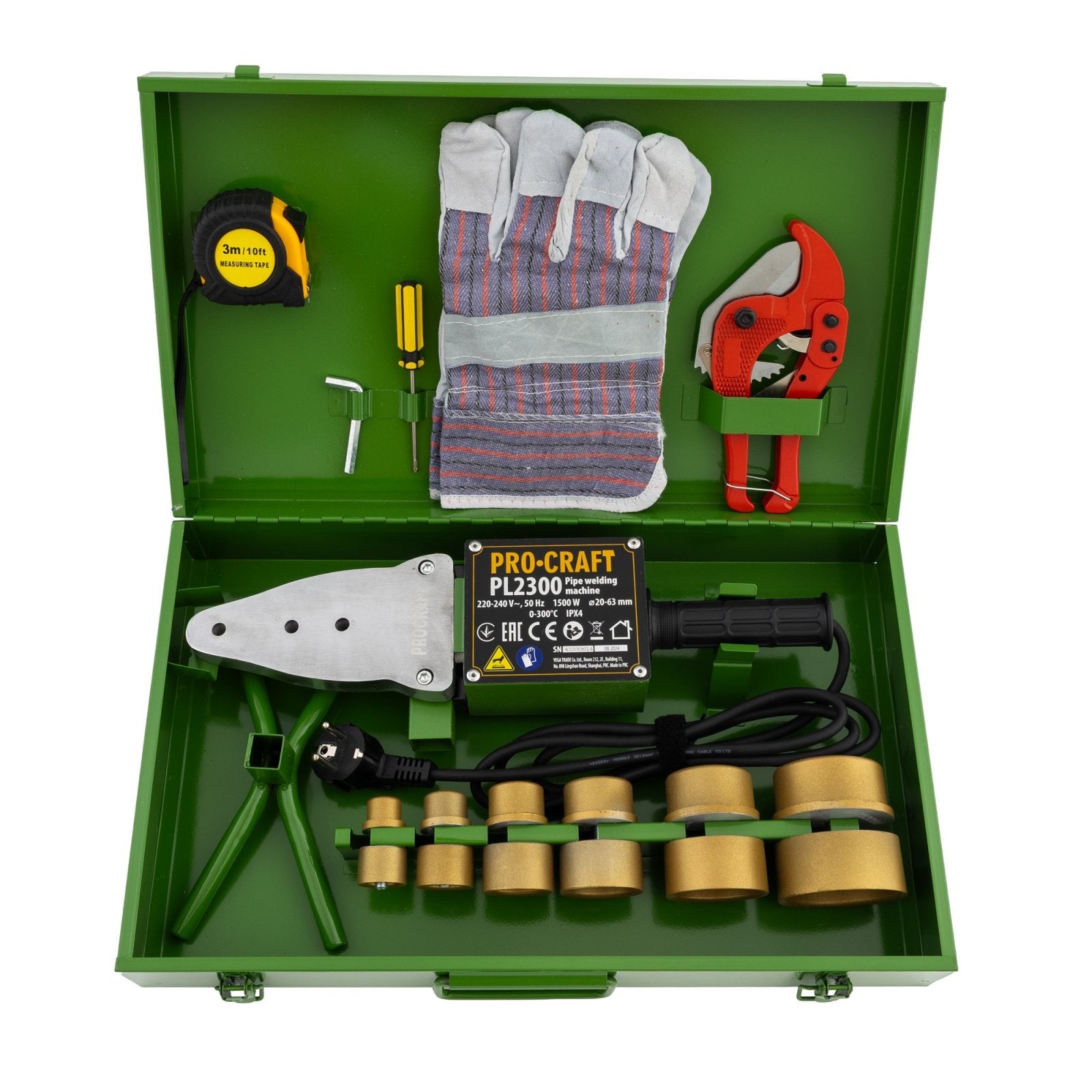 Plita sudura tevi PPR Procraft PL2300, 1500W, 300°C, 6 bacuri (20–63 mm), accesorii incluse