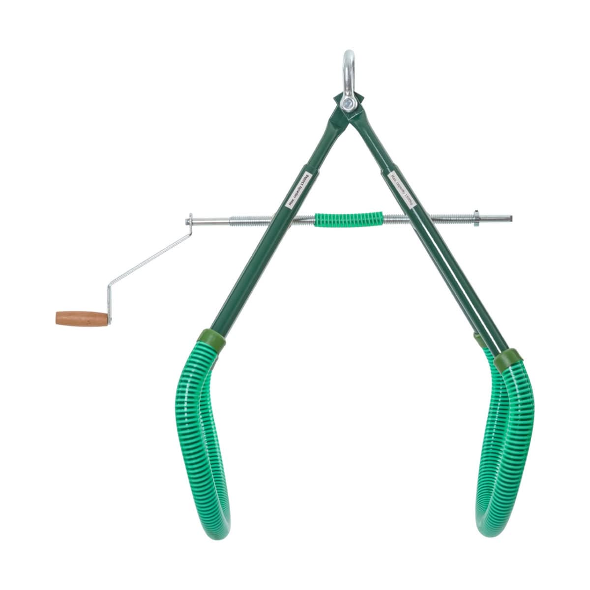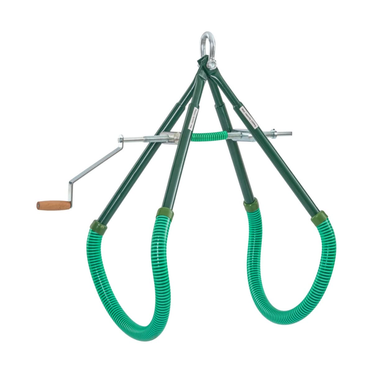 Dispozitiv simplu de ridicare a bovinelor avand o greutate maxima de 1500 kg. Latimea dispozitivului poate fi reglata in functie de talia animalului.