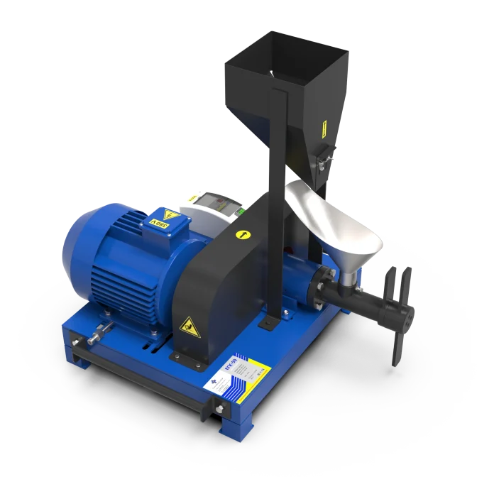 Extruderul EGK-50 de la TehnoMashStroy este un echipament modern pentru producerea furajelor extrudate de inalta calitate, destinat animalelor de ferma. Prin procesul de extrudare, cerealele sunt supuse presiunii si temperaturii ridicate, rezultand un furaj sterilizat, usor de digerat si cu valoare nutritiva crescuta. Compact, fiabil si economic, EGK-50 este ideal pentru gospodarii si ferme de dimensiuni mici si medii.