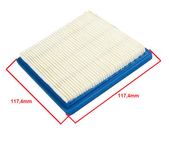 Filtru de aer compatibil cu motoare Briggs Stratton 3,5 CP, Quantum Dimensiuni: 117,4mm x 117,4 mm x 22,2mm Cod original OEM: 399877 Mentionam faptul ca produsul nu este original, insa este compatibil pentru modelele enumerate mai sus .