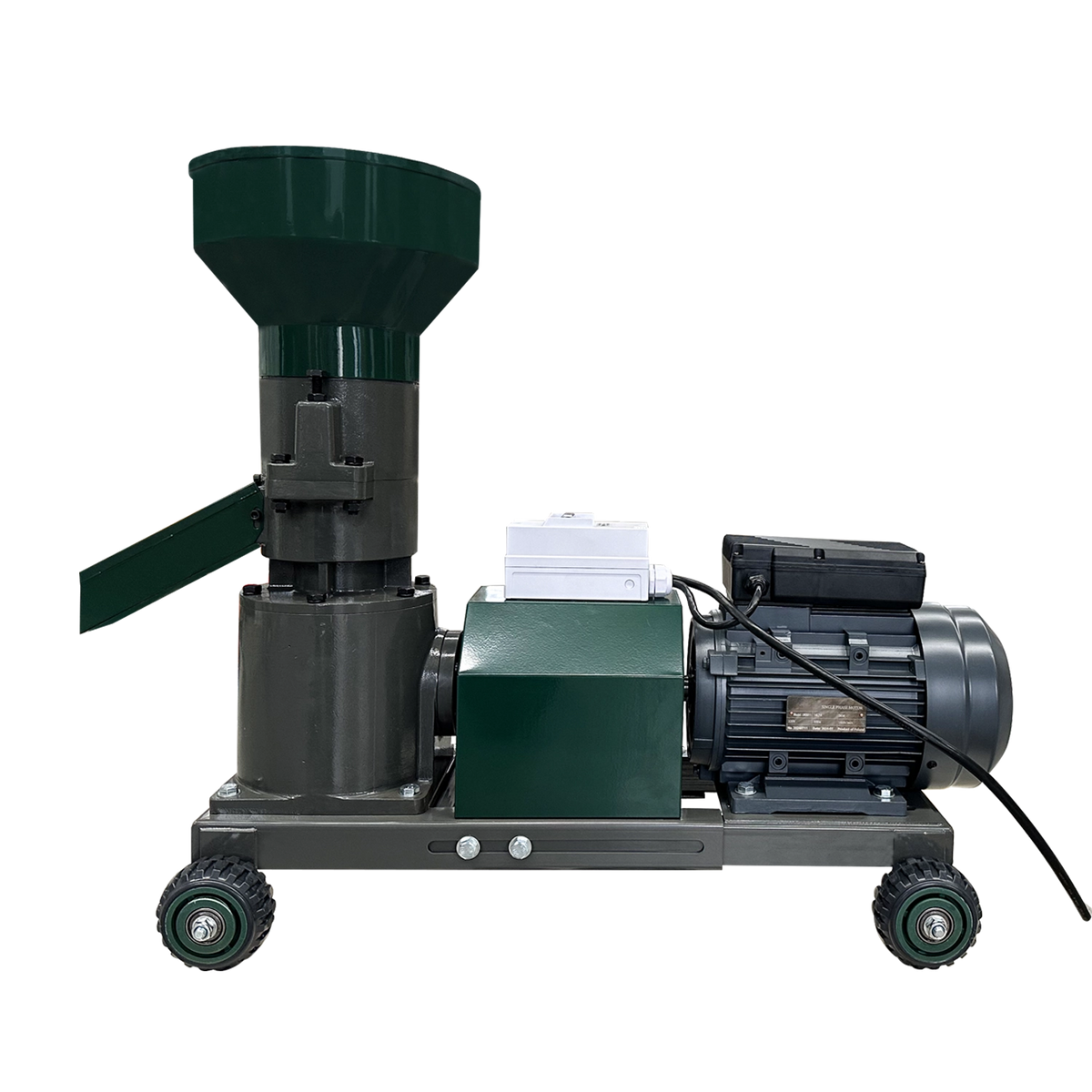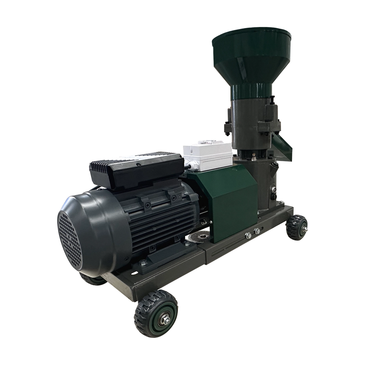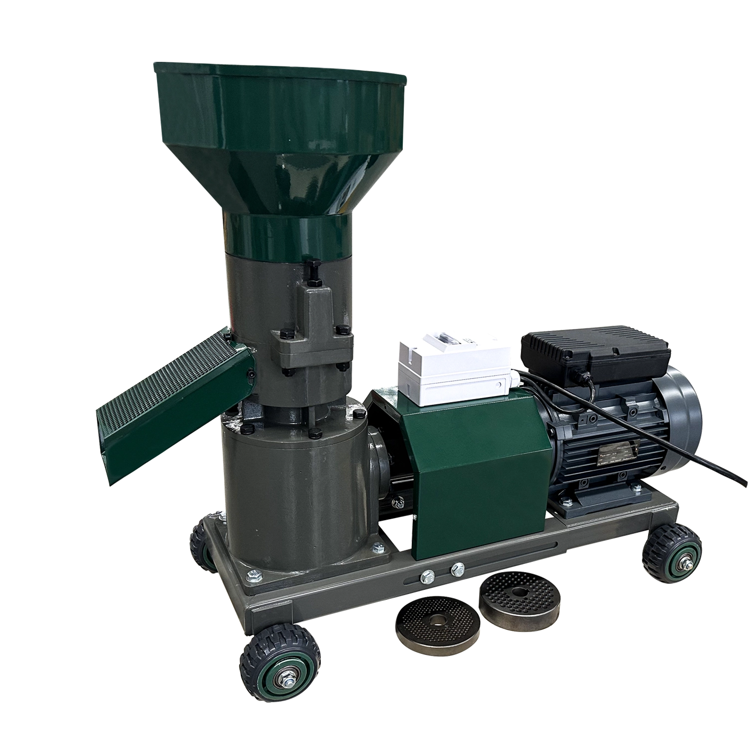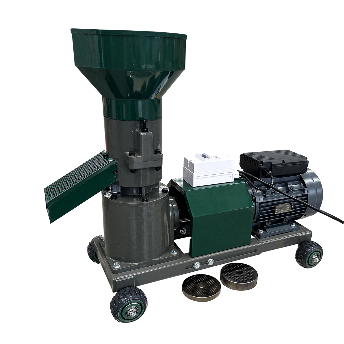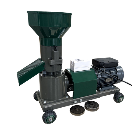 Este echipat cu 3 matrite (2.5 mm, 4 mm si 6 mm) si o rola presoare de 125 mm, permitand adaptarea peletilor in functie de necesitati. Reductorul conectat prin arbore cardanic reduce vibratiile si ofera o functionare mai lina, in timp ce designul constructiv previne patrunderea prafului in mecanisme, crescand durabilitatea.