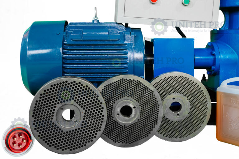 Granulatorul KL-250 cu 3 matrite si motor inclus este echipamentul ideal pentru ferme si unitati de productie care necesita furaje granulate uniform si rapid. Motorul puternic de 11 kW, rolele de 250 mm si transmisia cu reductor asigura functionare constanta si eficienta. Cele 3 matrite permit ajustarea dimensiunii peletilor in functie de tipul de furaj si necesitatile animalelor, oferind flexibilitate maxima.