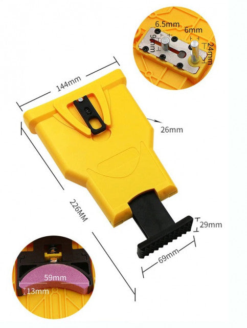 Dispozitiv portabil pentru ascutirea rapida a lanturilor de drujba - o modalitatea usoara pentru ascutirea lantului; - se utilizeaza fara demontarea lantului de pe sina de ghidaj; - evita erorile si salveaza timpul Pentru a vedea pentru ce lame este compatibil acest dispozitiv va rugam sa consultati imaginile produsului.
