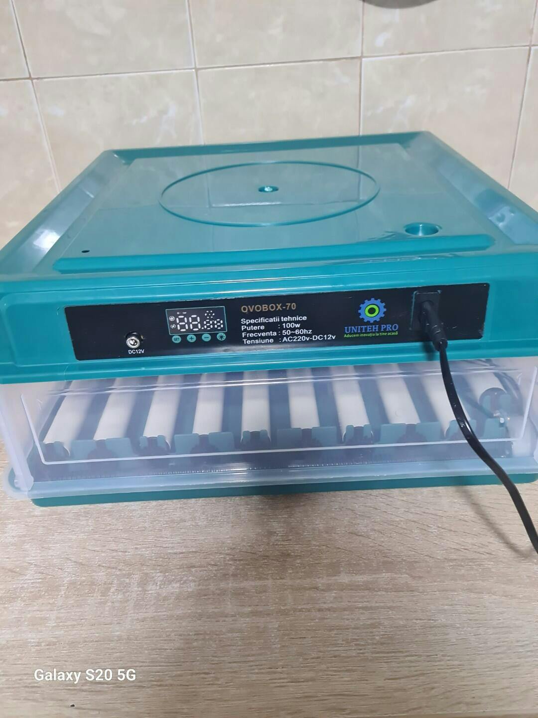 Incubator automat OVOBOX-70 pentru oua, capacitate mare, alimentare 220V si 12V, control temperatura, intoarcere automata