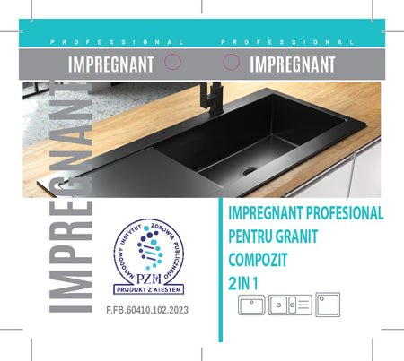 Aplicati agentul de impregnare pe toata suprafata chiuvetei sa lasati sa actioneze pentru 10-15 minute pentru a se absorbi in materialul chiuvetei.