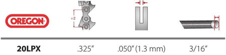 Lant drujba Oregon 21LPX064E 32 dinti - pas 3.25 - 1.3mm Se potrivesc la urmatoarele modele : Husqvarna 36, 40, 42, 45, 50, 51, 55, 137, 142, 242, 254, 340, 345, 346, 350, 351, 353, 357, 359, 445, 450, 455, 555, 562 XP G, 550 XP, 550 XP TrioBrake, 455 Rancher, 560 XP G, 545 , 550 XP G, 560 XP; Drujba chinezeasca 4500, 5200 Detalii : Pas: 325 Numar ochiuri: 32; Numar zale: 64; Canal 1.3mm Produs original Oregon Cod Oregon: 21LPX064E
