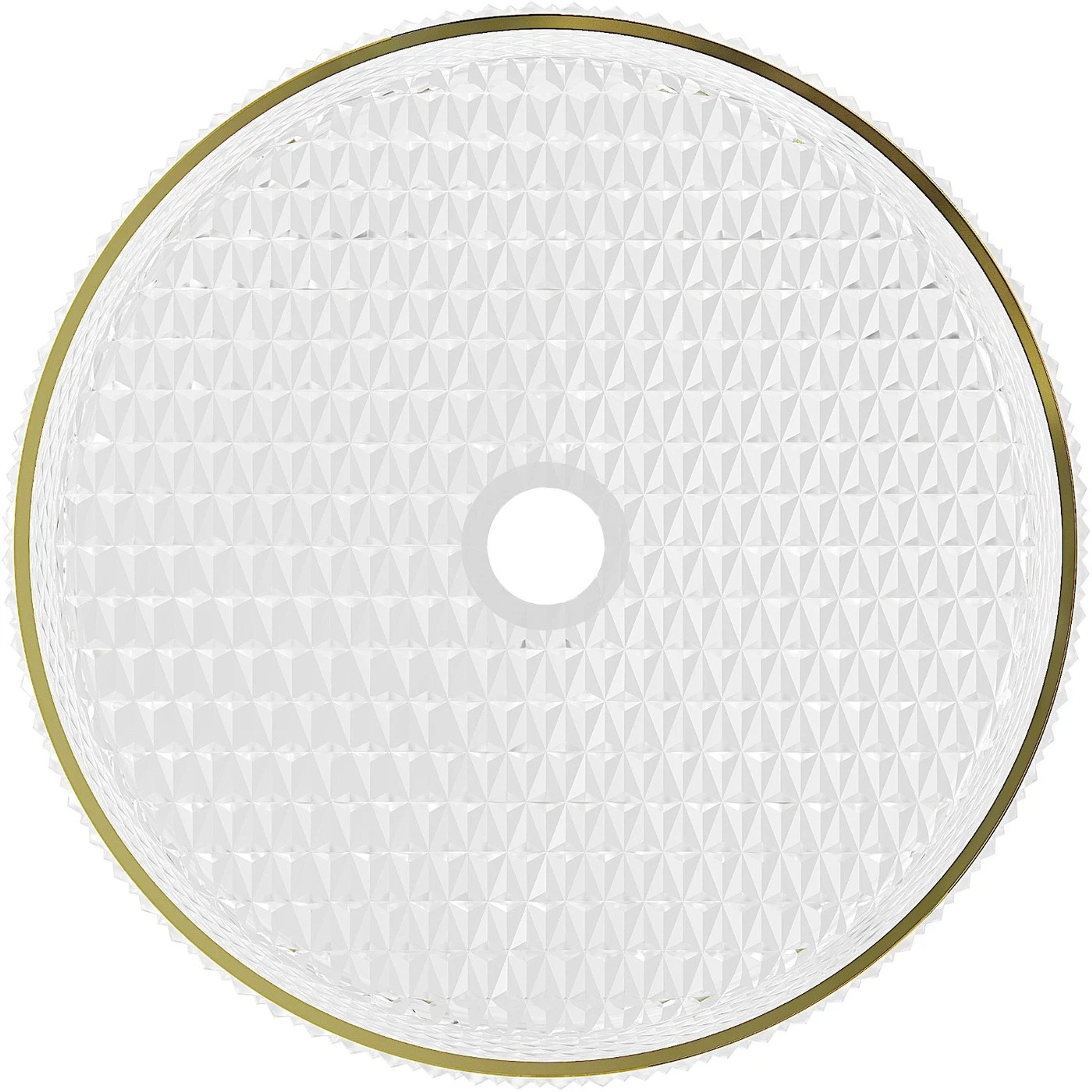 Lavoar Sandonna Mira Gold Line Lavoarul Sandonna Mira Gold Line este realizat din sticlă transparentă cu finisaj lucios, anti-mătuire. Suprafața transparentă, cu reflexii luminoase, adaugă un aer modern, iar dimensiunile sale compacte îl fac ideal atât pentru băile spațioase, cât și pentru cele mai mici. Caracteristici principale: Dimensiuni: Perfect echilibrat, cu un diametru de 40 cm și o înălțime de 12 cm. Montare: Pe blat Material: Sticlă de înaltă calitate, rezistentă la uzură și ușor de întreținut. Întreținere ușoară: Suprafața netedă și lucioasă este simplu de curățat, menținând aspectul impecabil în timp.