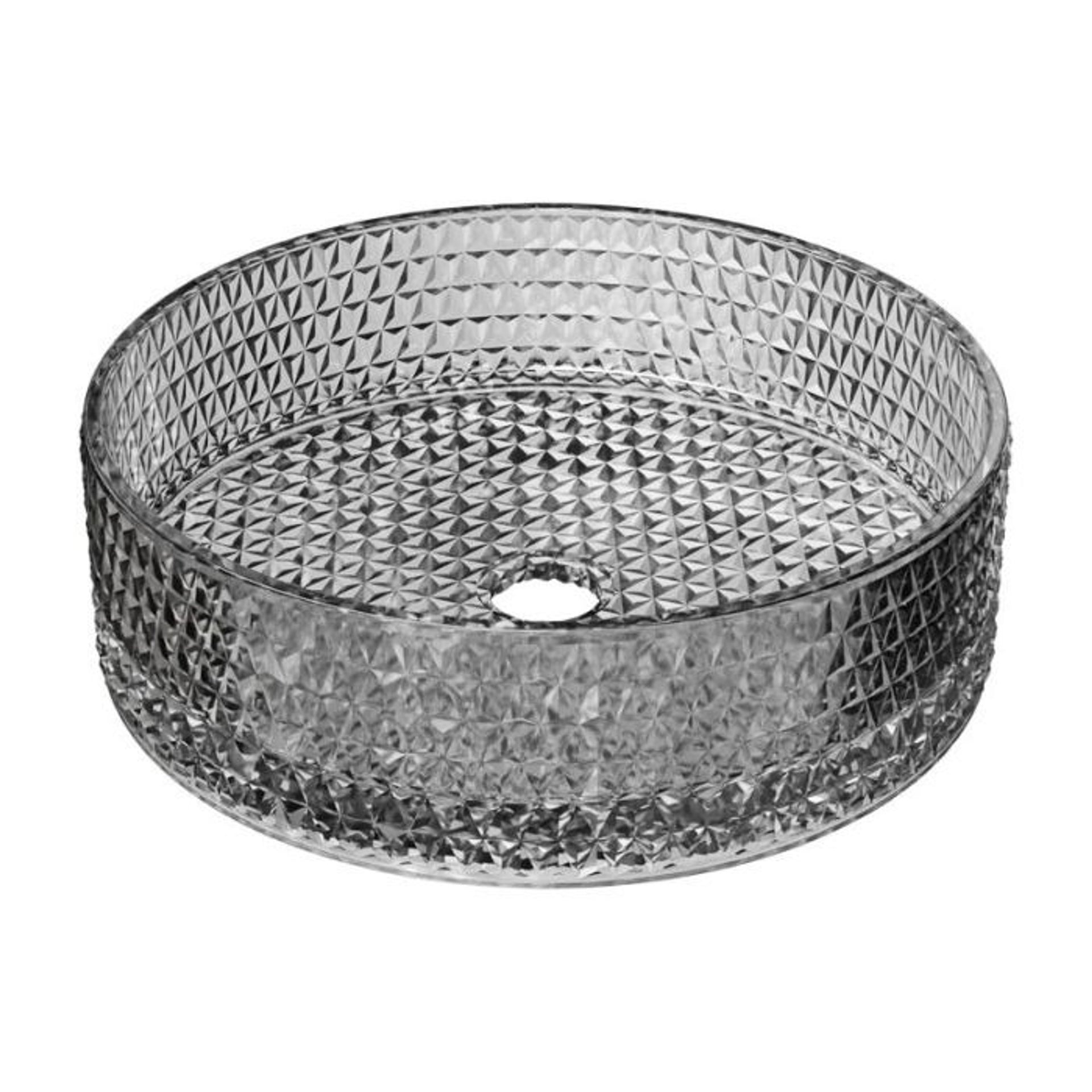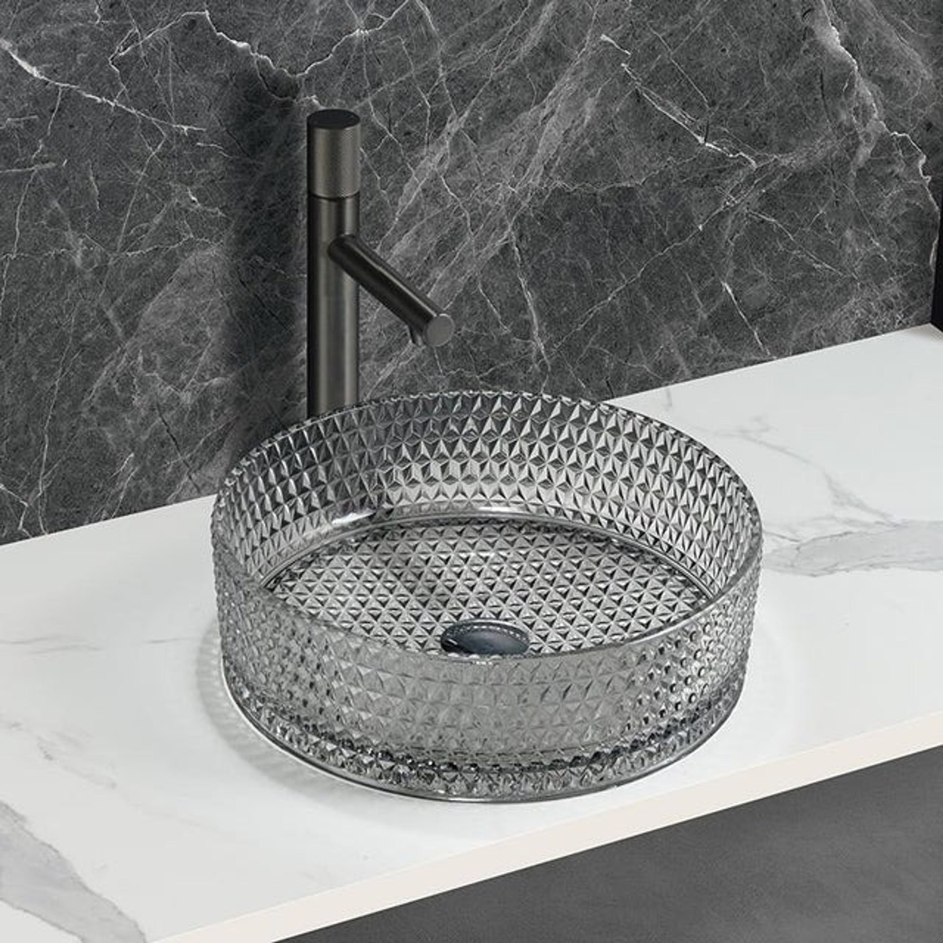 Lavoarul Sandonna Mira Gri este realizat din sticlă transparentă cu finisaj lucios, anti-mătuire.