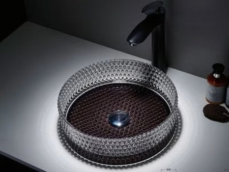 Lavoar Sandonna Mira Negru total Lavoarul Sandonna Mira Negru total este realizat din sticlă transparentă cu finisaj lucios, anti-mătuire. Suprafața transparentă, cu reflexii luminoase, adaugă un aer modern, iar dimensiunile sale compacte îl fac ideal atât pentru băile spațioase, cât și pentru cele mai mici. Caracteristici principale: Dimensiuni: Perfect echilibrat, cu un diametru de 40 cm și o înălțime de 12 cm. Montare: Pe blat Material: Sticlă de înaltă calitate, rezistentă la uzură și ușor de întreținut. Întreținere ușoară: Suprafața netedă și lucioasă este simplu de curățat, menținând aspectul impecabil în timp.