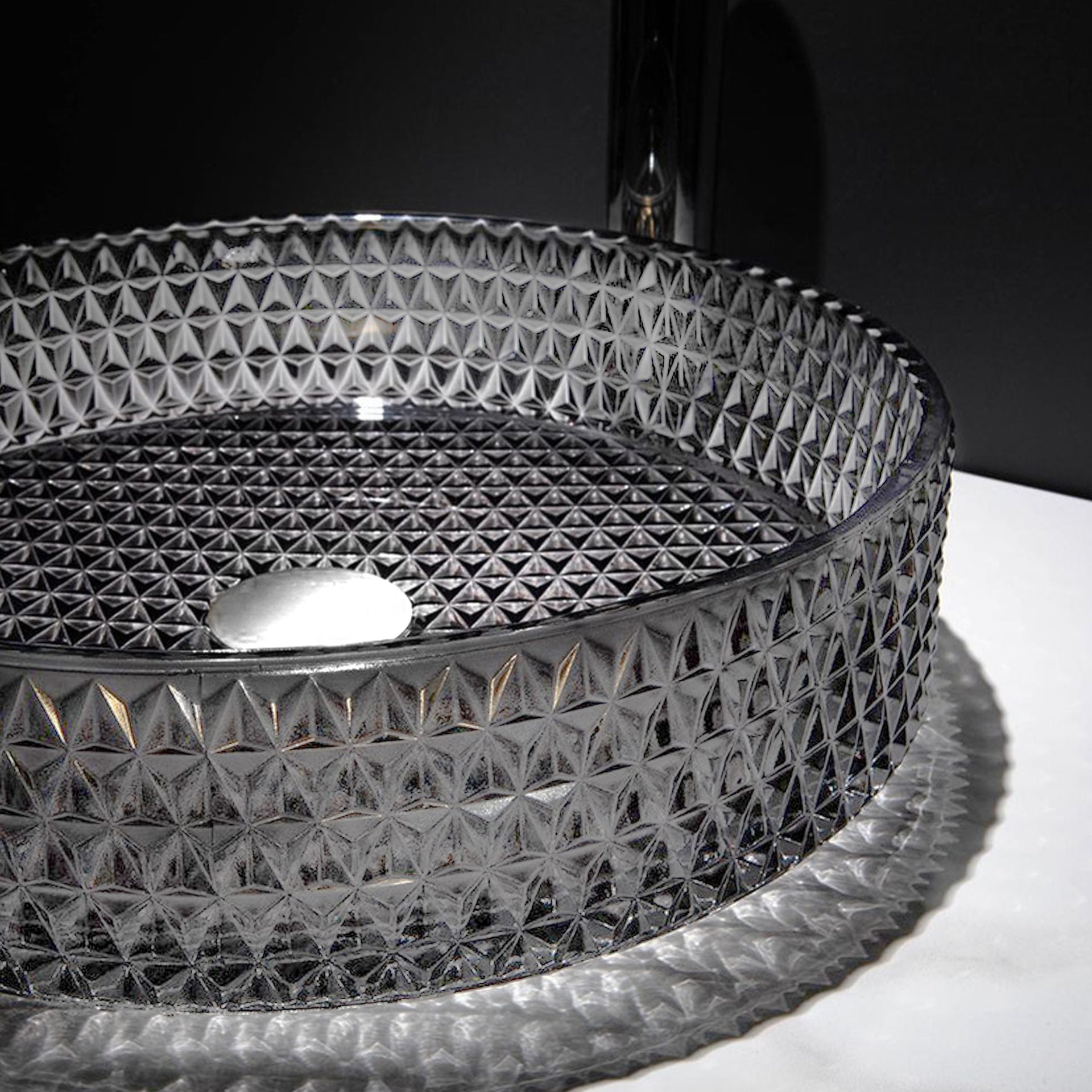 Suprafața transparentă, cu reflexii luminoase, adaugă un aer modern, iar dimensiunile sale compacte îl fac ideal atât pentru băile spațioase, cât și pentru cele mai mici.