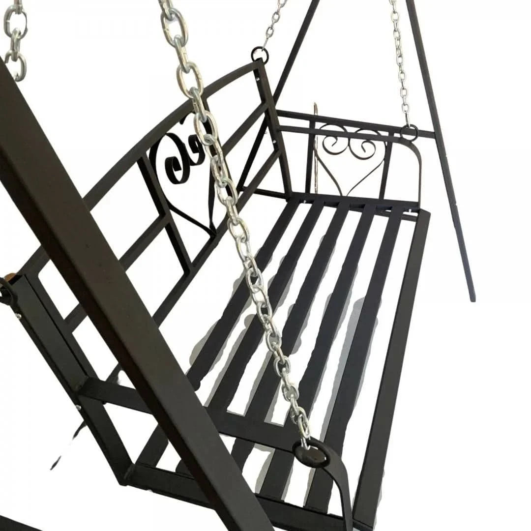 Sezutul ergonomic urmareste forma corpului pentru confort sporit, iar lanturile metalice de 5 mm, fixate cu carabine de 6 mm si arcuri de tractiune de 6.5 mm, asigura o balansare lina si sigura. Talpile picioarelor au gauri de 8.5 mm pentru fixare pe suprafete dure, ceea ce ofera stabilitate suplimentara.