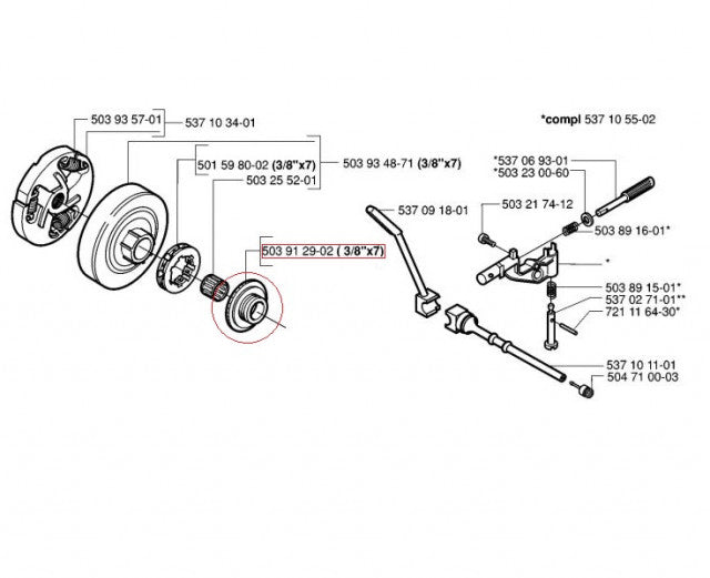Melc pentru pompa ulei compatibil pentru drujba Husqvarna 357, 359. Pas 3 8. Cod OEM 503 91 29-02