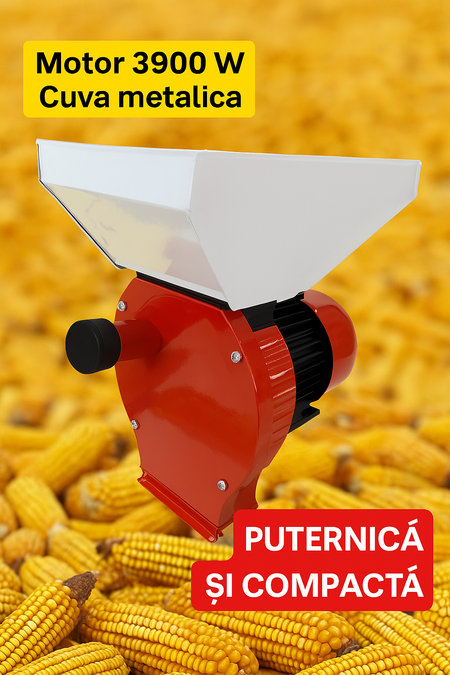 Moara electrica Elefant®, 3.9 kw 3000 rpm motor 100% cupru, 250 kg/ora, cuva mare, 20 de ciocanele pentru cereale si stiuleti