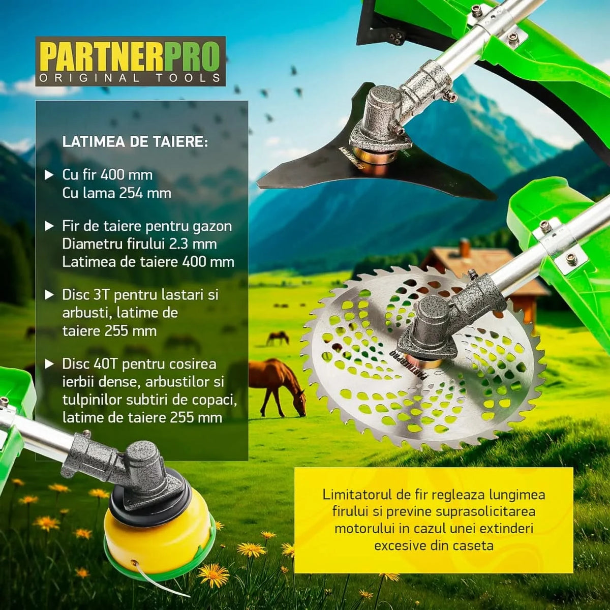 Motocoasa benzina PartnerPro PP5600, 52cc, 5.6CP, motor 4T, 10000rpm, latime taiere 254mm