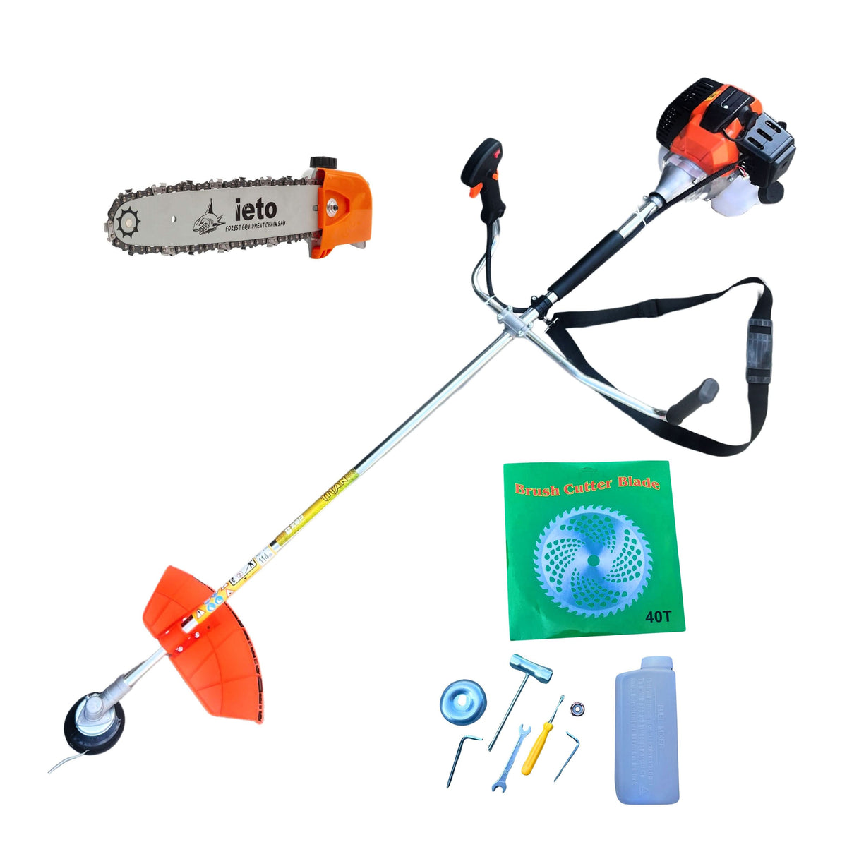 Pentru ca iti ofera putere, fiabilitate si multifunctionalitate. Este un echipament complet, echipat inclusiv cu adaptor tip drujba – ideal pentru taiat crengi, curatat gradina, si cosit, totul cu un singur aparat.