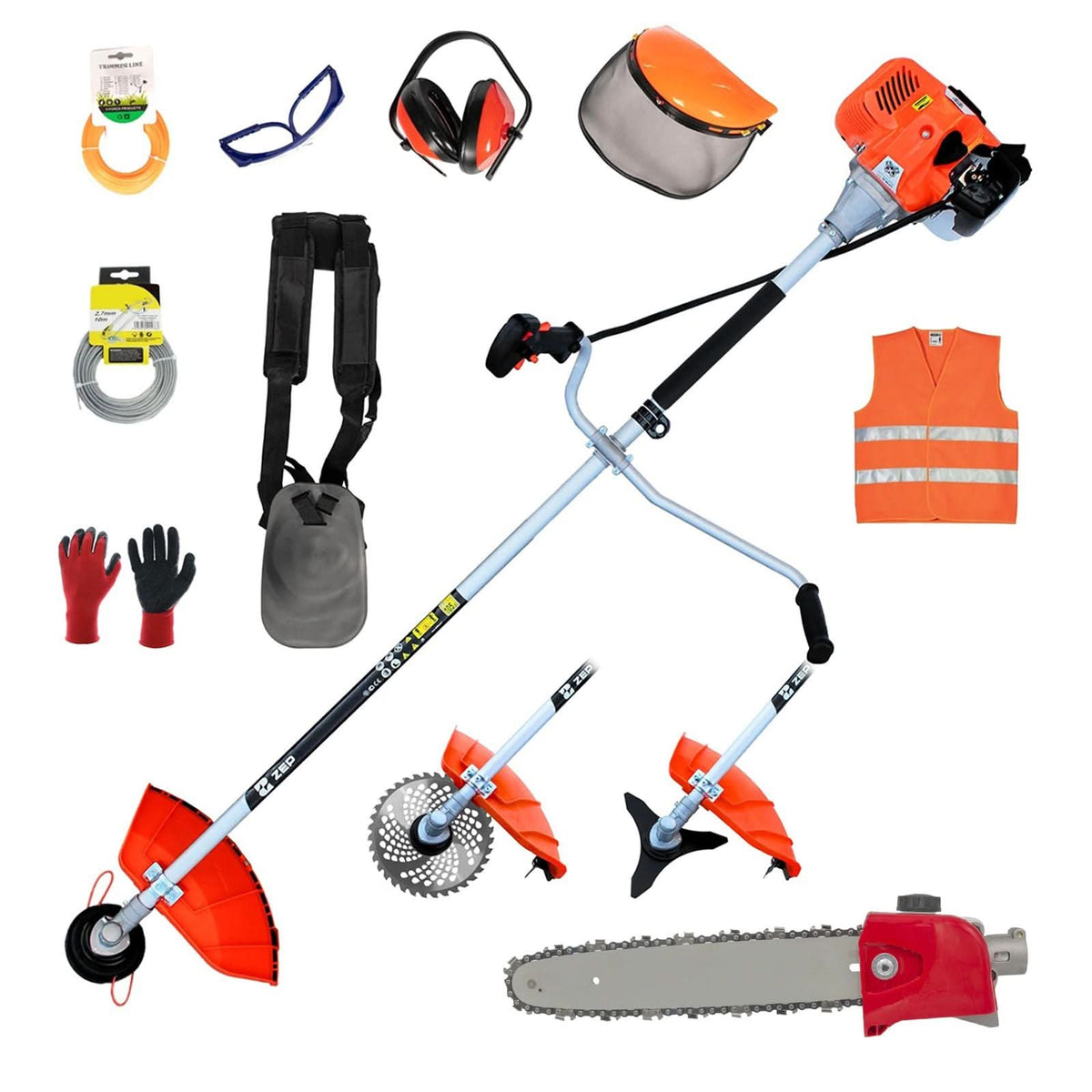 Motocoasa ZEP Power 5, 5 CP, 52CC, 8000 RPM, Easy Start, 13 Accesorii, Adaptor tip drujba, Tambur Fir, Disc Metal 3 Lame