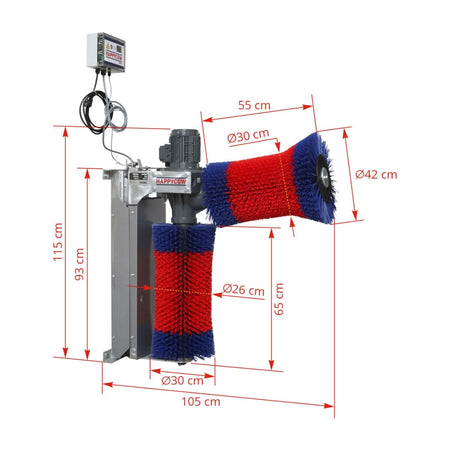 Echipament performant pentru curatarea vacilor, dotat cu doua perii: una orizontala si una verticala