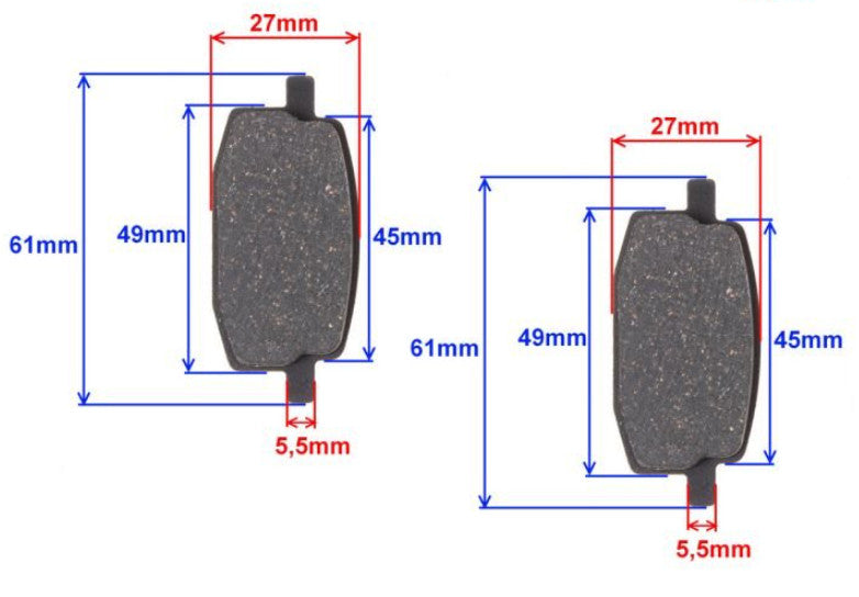 Placute frana pentru urmatoarele marci de scutere: Baja 50cc, Baotian 50cc, Benzhou 50cc, Buffalo 50cc, Dazon 50cc, Eppella 50cc, Ering 50cc, Flex 50cc, Fly Scooters 50cc, Gorila Motor 50cc, Huatian 50cc, JinLun 50cc, Jmstar 50cc, Jonway 50cc, Karcher 50cc, Kreidler 50cc, Longbo 50cc, Longjia 50cc, MBK Booster 100cc, Massimo 50cc, Mowi City 50cc, Motofino 50cc, Motorro 50cc, MUZ 50 125cc, PGO 50cc, Peugeot V-Click, Puma 50cc, Quianjiang 50cc, Qingqi 50cc, Rieju 50cc, Rocketa 50cc, Sachs 50cc, Schwin 50cc, Sukida 50cc, SunL 50-150cc, Xinling 50cc, Xintian Kinroad 50cc, Yamaha Zuma BWS 100cc, Zhongyu 50cc, Zongshen 50cc.