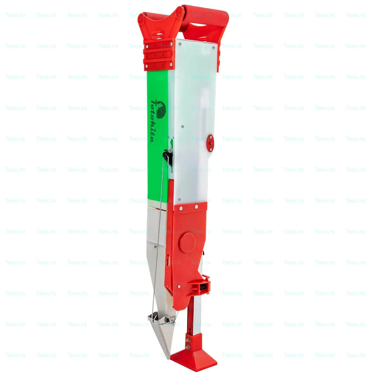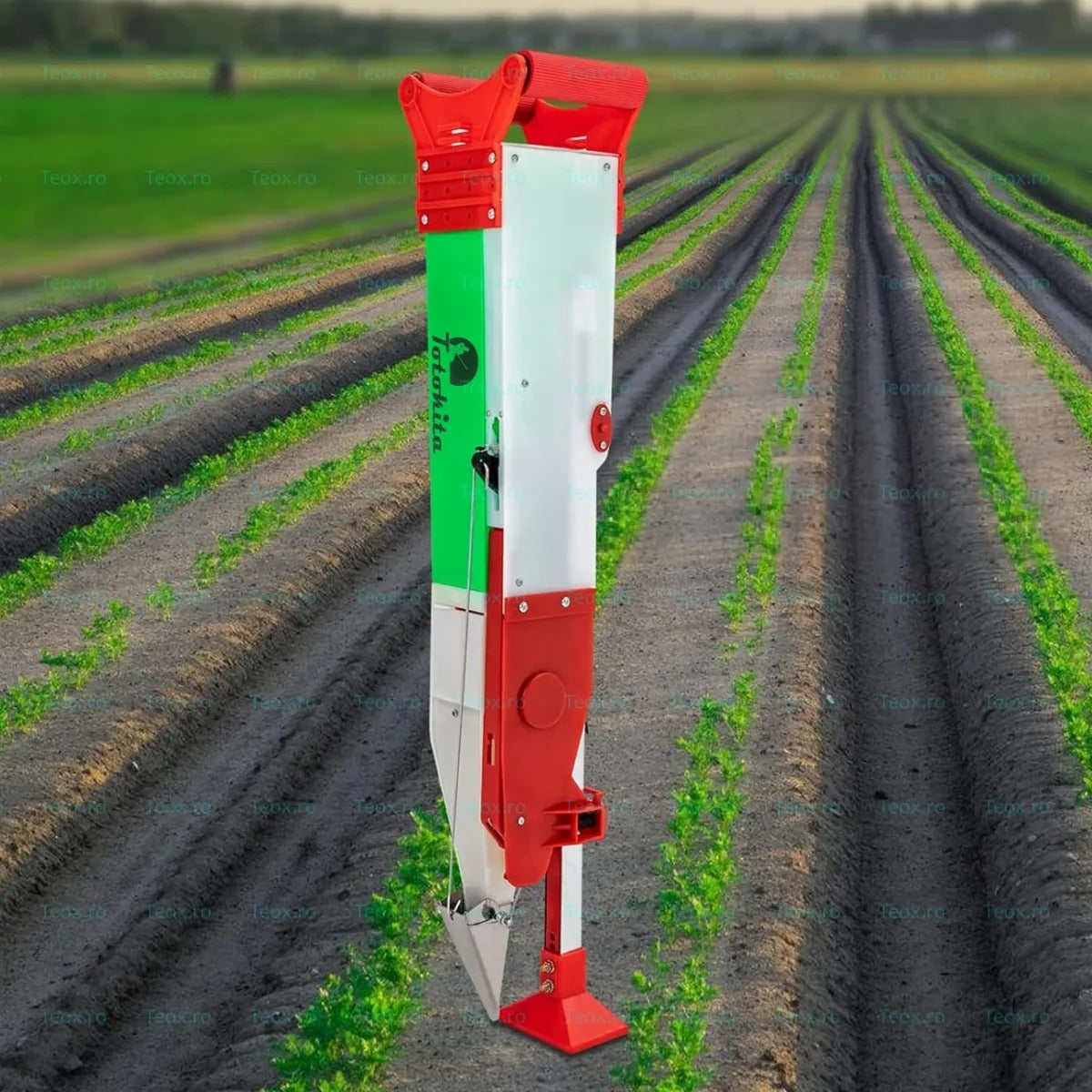 Plantatorul manual pentru seminte cu distantier si 6 tamburi de dimensiuni diferite permite insamantarea rapida si eficienta in gradini sau sere. Este ideal pentru sol afanat, nisipos sau maruntit si permite plantarea semintelor mari precum porumb, fasole, soia, mazare sau pepeni. Dispozitivul permite reglarea numarului de seminte plantate simultan (1-3), asigurand o semanare uniforma si economisind timp. Designul ergonomic cu manere faciliteaza operarea usoara, chiar si in zone deluroase sau in spatii unde utilajele mecanice nu pot fi folosite.