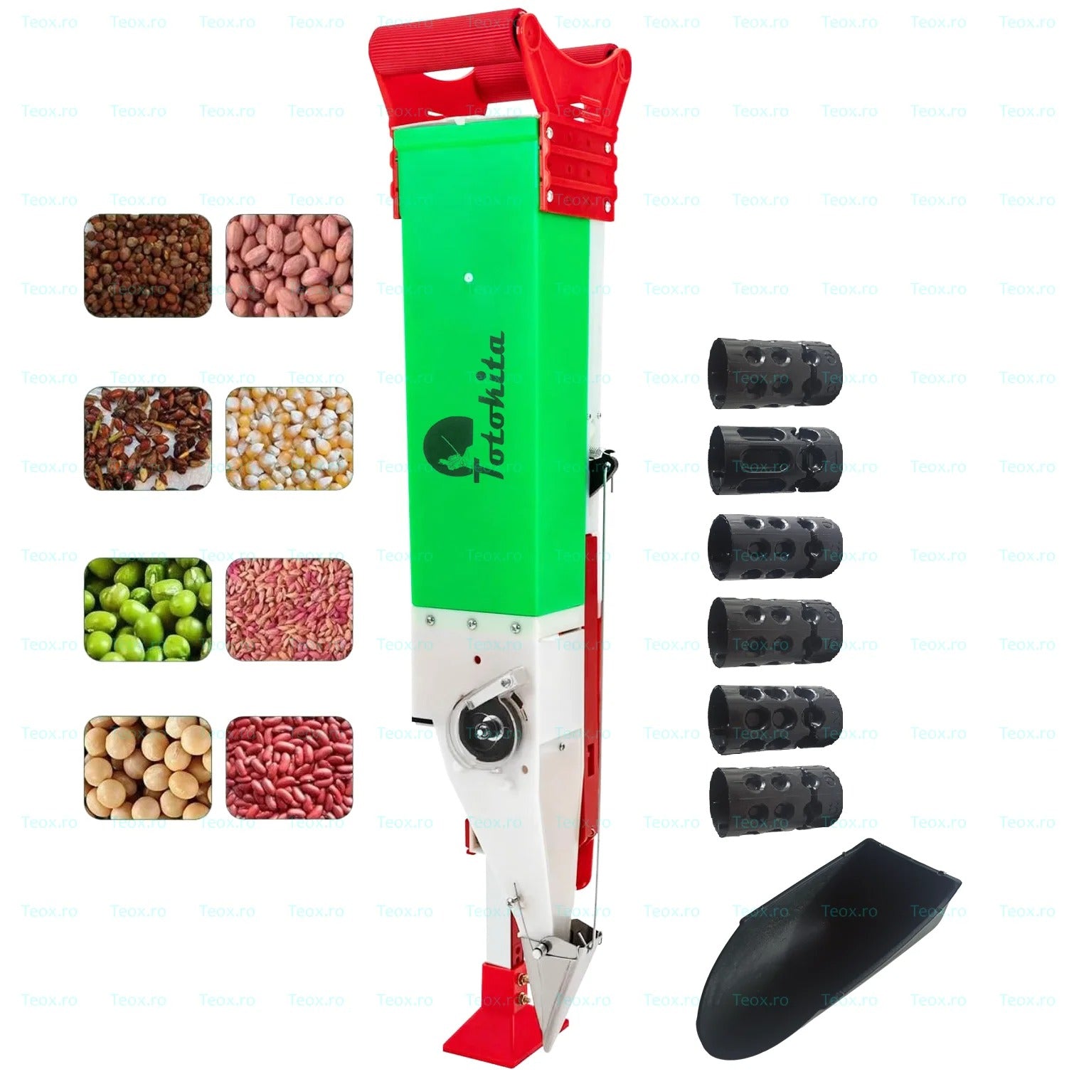 Plantator seminte manual cu distantier si 6 tamburi, ajustabil pentru porumb, fasole, mazare
