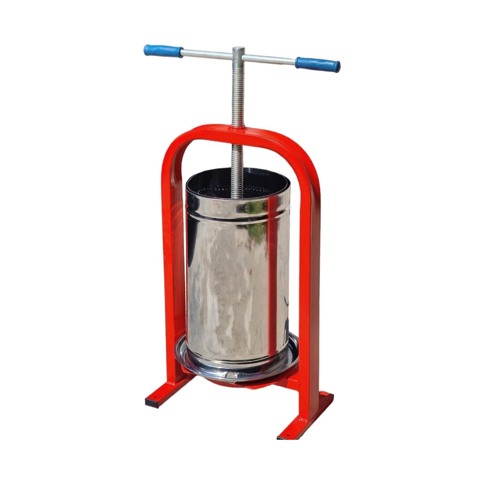 Vinul nu se lasa – se toarna! Dar pana atunci trebuie preparat. Teascurile de inox sunt un mijloc curat si rapid de presare a masei de ciorchine trecute prin zdrobitor. Pentru o gospodarie cu numar redus de butuci de vita de vie un teasc de 25 litri este suficient. Presare se face prin rasucirea axului cu filet la capatul caruia este conectata talpa-capac metalica. Cilindrul cu orificii le permite mustului sa se scurga in tava de inox de la baza teascului de unde va ajunge in recipientul de colectare.
