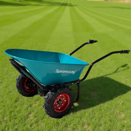 Roaba electrica Broman DUO este solutia ideala pentru transport rapid si fara efort in gradina, gospodarie sau pe santier. Echipata cu un motor puternic de 500W si baterie de 24V – 12Ah, ofera autonomie si performanta crescuta chiar si la incarcaturi grele.